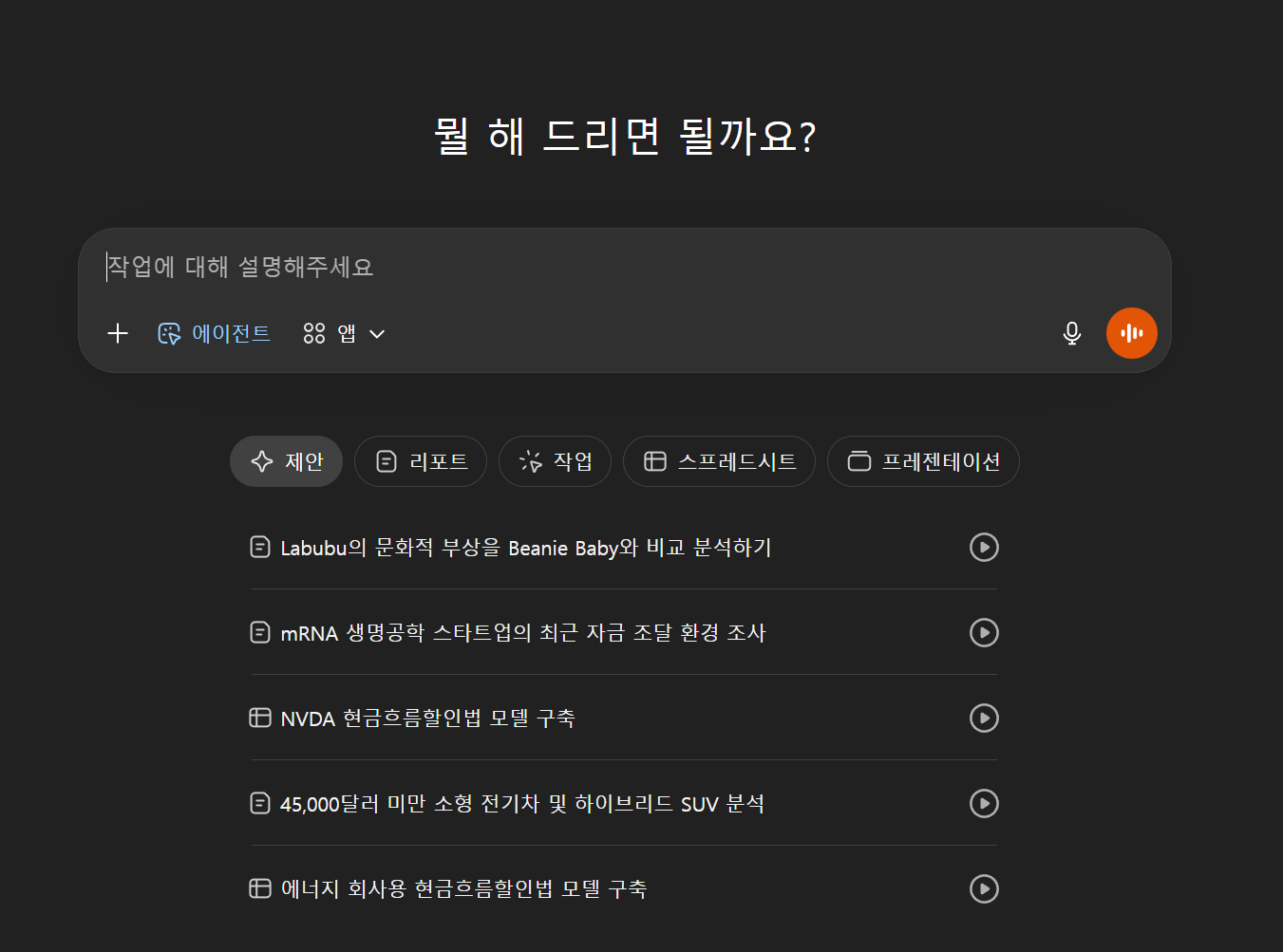 Operator가 제안하는 작업 유형들을 보면 꽤 다양해요: